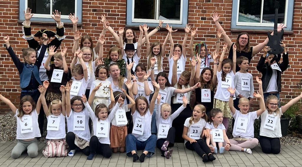 „Wir sind 30 Mädchen und Jungen und treffen uns jeden Freitag um 15 Uhr in der Aula der Langballiger Schule zum Kinderchor. Einige kommen von der Schule, manche gehen noch gar nicht zur Schule und werden von ihren Eltern gebracht. Und ein paar größere Kinder kommen mit dem Bus aus der Stadt. Unsere Chorleiterin Susanne Fenselau begrüßt uns alle fröhlich. Dann setzen wir uns in den Kreis. Aber zum Singen stehen wir natürlich auf.“